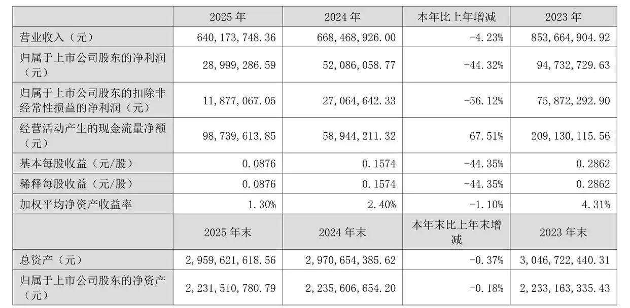 4月16日晚间,益盛药业(002566)披露2025年年报,报告期内实现营业收入6.4亿元,同比下降4.23%;归属于上市公司股东的净利润2899.93万元,同比下降44.32%;扣除非经常性损益的净利润1187.71万元,同比下降56.12%。